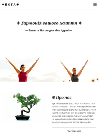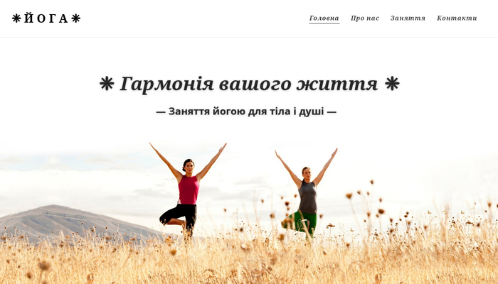 Спокійний шаблон для йоги або школи танців. Ви сможете додати більше динамічності сайту завдяки ефекту паралакс.