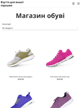 Подаруйте клієнтам свого взуттєвого магазину можливість купувати онлайн за допомогою нашого нового шаблону. Впорядковуйте свої товари до категорій, додавайте описи та продавайте їх швидко у своєму новому інтернет-магазині.