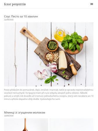 Готов поділитися про ваши навички приготування їжі? Виберіть цей шаблон підготовлений для всіх блогерів, колекціонерів рецептів і всіх інших ентузіастів їжі. Поділіться своїми улюбленими рецептами, пишіть про цікаві інгредієнти, які ви натрапили і не забудьте розповісти своїм читачам і трохи про себе.